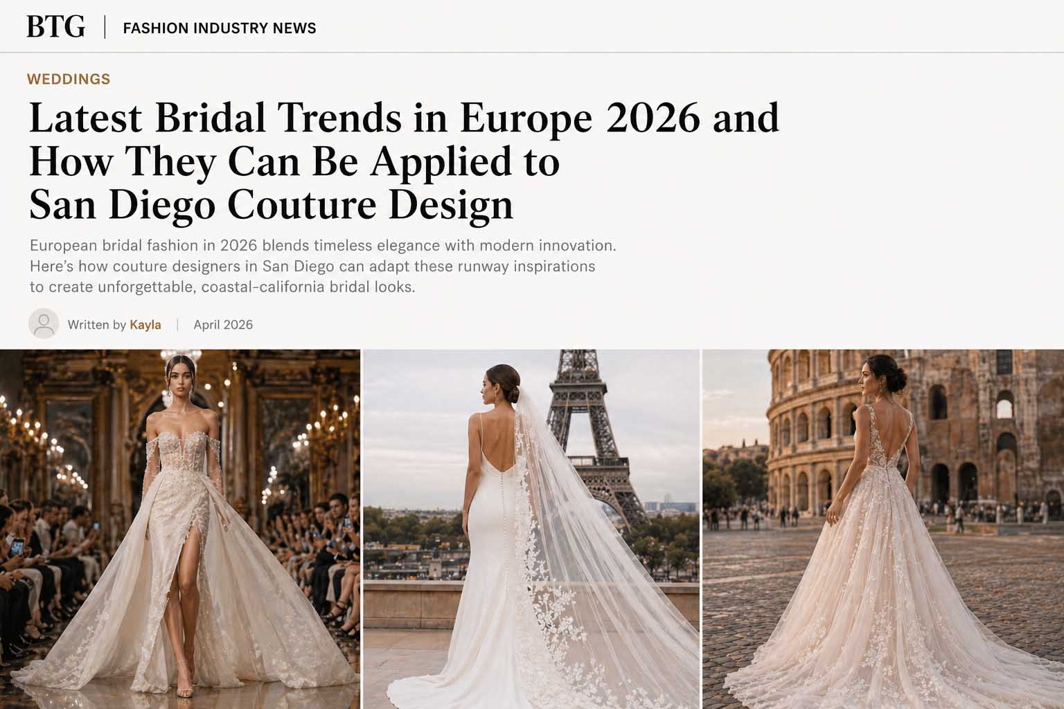 Latest Bridal Trends in Europe 2026 and How They Can Be Applied to San Diego Couture Design