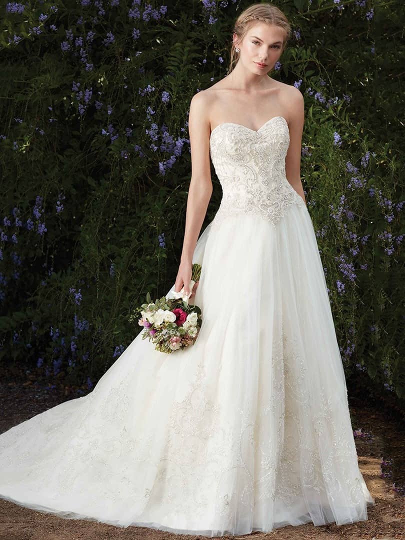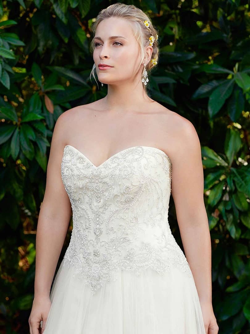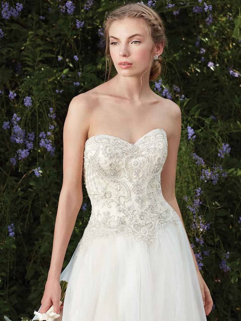 Explore Casablanca A-Line Wedding Dresses in San Diego – Classy Strapless Gowns with Sweetheart Neckline, Tulle Skirt & V-Back Design