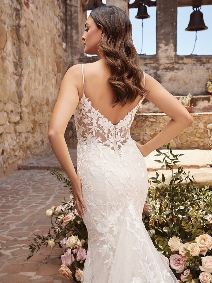 At Bridal and Tuxedo Galleria, we are committed to providing personalized fittings and custom alterations, ensuring that the Casablanca Fit-and-Flare Wedding Dress fits each bride perfectly. Unlike many competitors in San Diego that offer standard sizing with minimal alterations, we focus on creating a tailored experience for each bride, making sure that the gown fits her unique body shape and highlights her natural beauty. Our alterations experts ensure that every detail, from the lace detailing to the V-back, is customized to suit the bride’s measurements and preferences, guaranteeing a flawless bridal look.