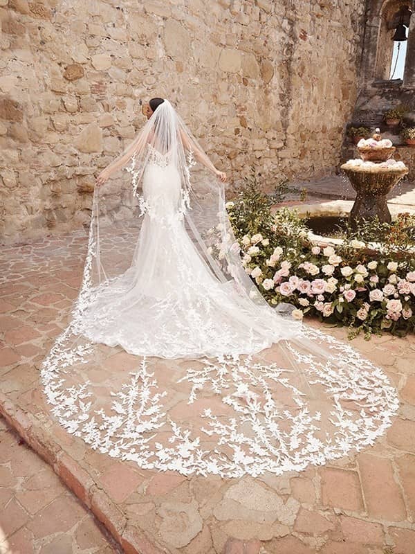 Crafted from luxurious lace and adorned with intricate detailing, this gown offers the perfect balance of romance and sophistication. The plunge neckline adds a daring touch, creating a deep V-shape that elongates the bride’s neck and accentuates her face, while maintaining a tasteful design. The V-back adds a modern, sensual twist, showcasing the bride’s back without being overly revealing, making it perfect for brides who want to feel confident and beautiful.