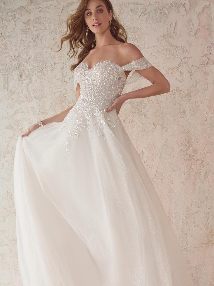 The A-line wedding dress remains a classic favorite among San Diego brides due to its universally flattering shape. This silhouette gracefully flares from the waist down, creating a balanced and elegant look. Whether you’re hosting a formal wedding in a ballroom or an intimate ceremony on the beach, the Maggie Sottero A-line lace gown ensures comfort and sophistication without sacrificing style. Its versatility makes it the perfect choice for all wedding types, offering elegance for both casual and grand celebrations.