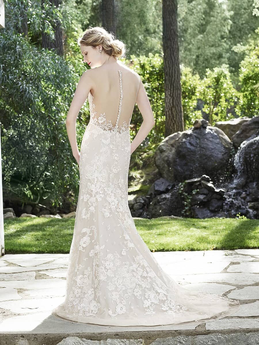 Compared to other bridal shops in San Diego, Casablanca Bridal stands out by incorporating the illusion back, sweetheart neckline, and scoop back into their A-line and fit-and-flare wedding dresses. Many competitors may offer basic necklines or traditional backs, but Casablanca Bridal combines these flattering features to ensure that every bride feels beautiful and confident on her wedding day. The illusion back and sweetheart neckline create a timeless, romantic look, while the scoop back adds a modern touch that makes the gown unique.