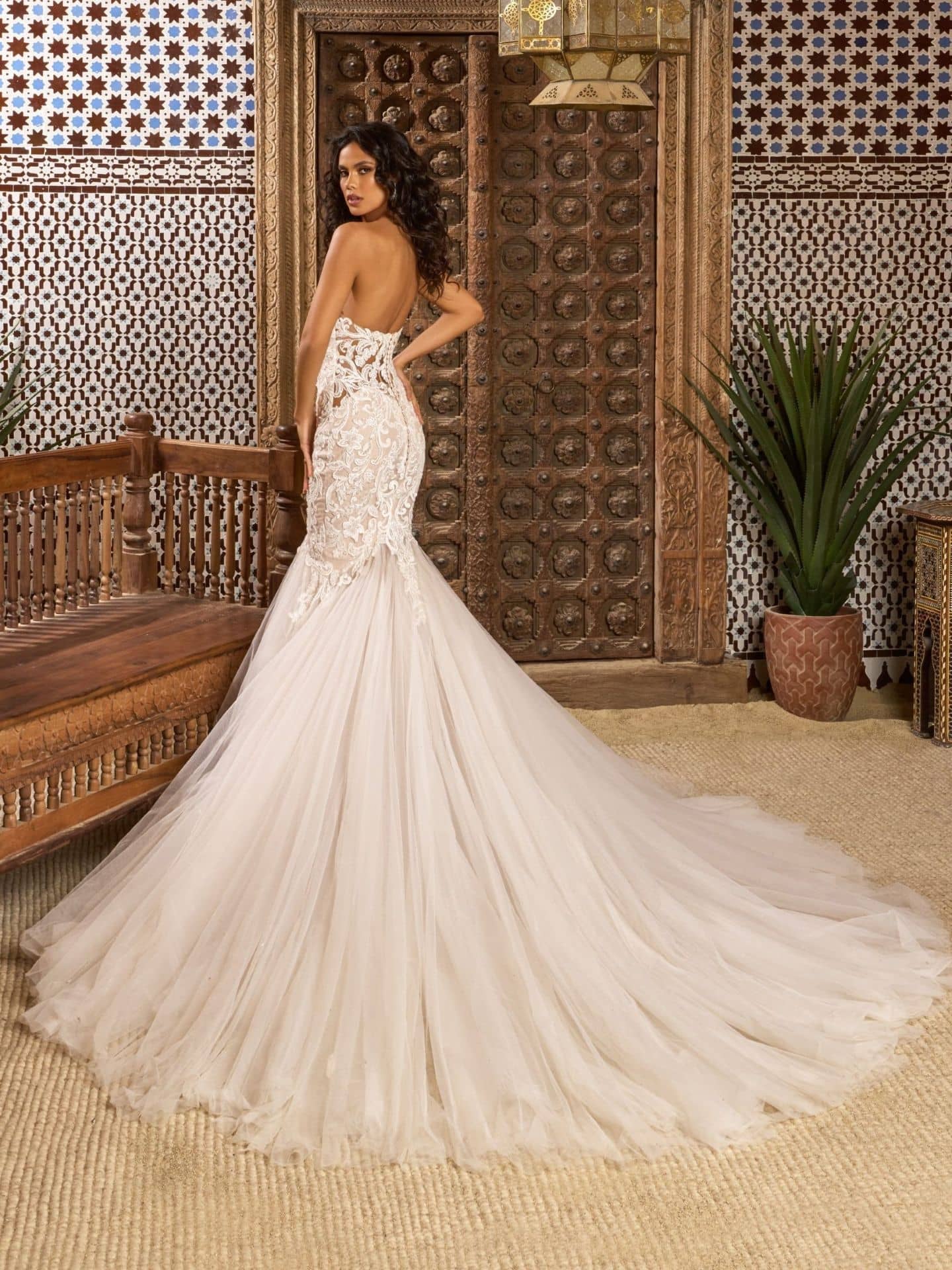 At Bridal and Tuxedo Galleria, we proudly offer this Kitty Chen strapless wedding dress — a favorite among brides looking for San Diego bridal boutiques that combine quality, luxury, and service. Crafted with intricate lace and flowing tulle, this mermaid silhouette is a perfect choice for brides who dream of walking down the aisle in something unforgettable.