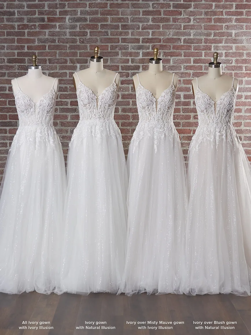 At Bridal and Tuxedo Galleria, we offer a carefully curated selection of Rebecca Ingram wedding dresses, including this exquisite A-line lace gown. Our expert consultants are here to help you find the perfect wedding dress that matches your personal style and wedding vision. Whether you’re looking for a romantic lace gown, a modern V-back dress, or a timeless A-line silhouette, we have something for every bride. Visit us today to explore this stunning gown and take advantage of our sample sale for the best deal on a designer wedding dress!
