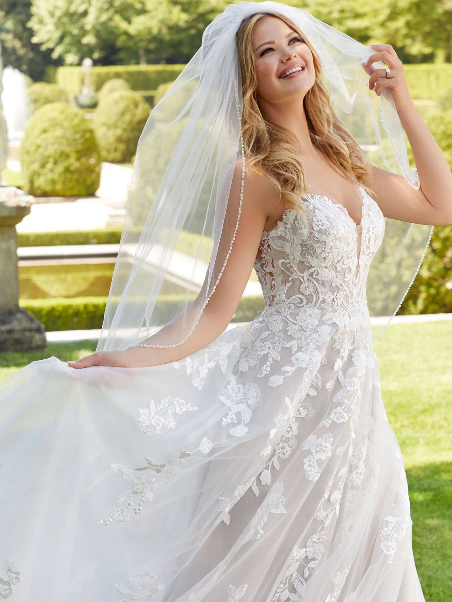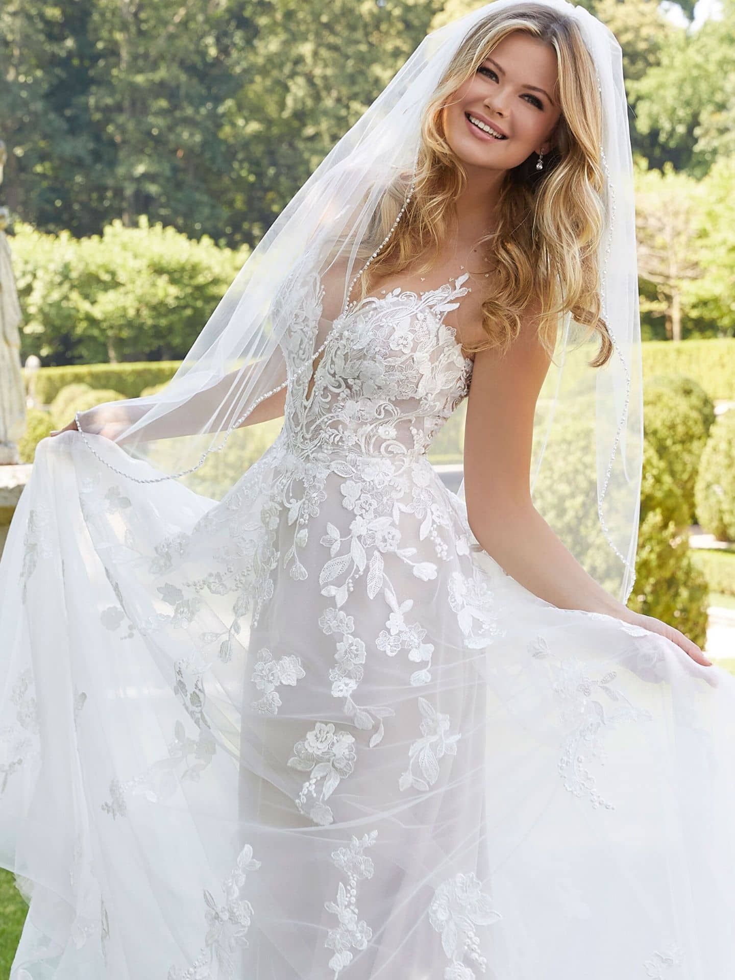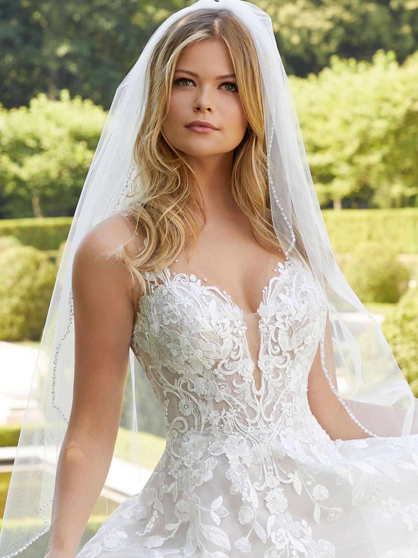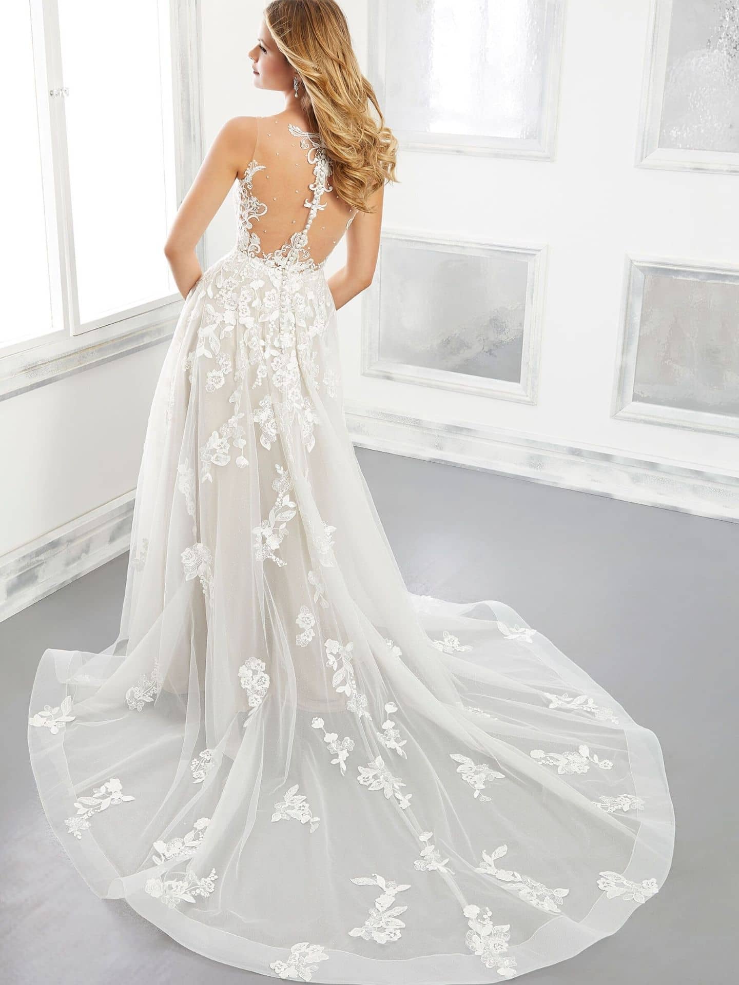 Tulle is a fabric that brings softness and romance to any wedding dress, and Morilee’s collection embraces this beautiful material with stunning results. Whether you’re choosing an A-Line or Ball Gown style, the tulle skirt adds a dreamy, ethereal quality to your bridal look. The soft texture of tulle combined with the intricate lace and illusion back designs creates a timeless elegance that will leave a lasting impression on your guests. Perfect for a romantic outdoor wedding or a grand ballroom celebration in San Diego, tulle offers a delicate, airy feel that enhances any wedding gown.