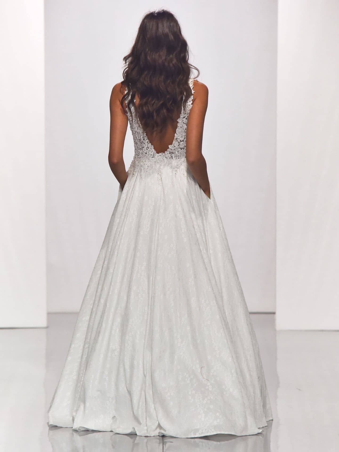 Morilee’s A-Line collection also features dramatic low back and V-back designs, adding a modern twist to a classic silhouette. These back details not only provide a stunning visual effect but also offer a sensual touch while maintaining elegance. The low back creates an air of sophistication, while the V-back brings a bold statement to the gown, making it perfect for San Diego brides who want a unique and unforgettable look.