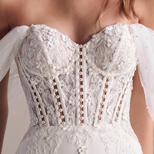 The fit-and-flare wedding dress is a universally flattering silhouette that works for all body types, making it one of the most sought-after styles for San Diego brides. The fit-and-flare style hugs the body through the torso and hips before gently flaring out from the knees down, creating a balanced and graceful look. The Maggie Sottero fit-and-flare lace gown is perfect for brides who want to showcase their figure while maintaining comfort and elegance. Whether you’re hosting a formal San Diego wedding or a more casual outdoor celebration, the fit-and-flare silhouette ensures you look chic from every angle.