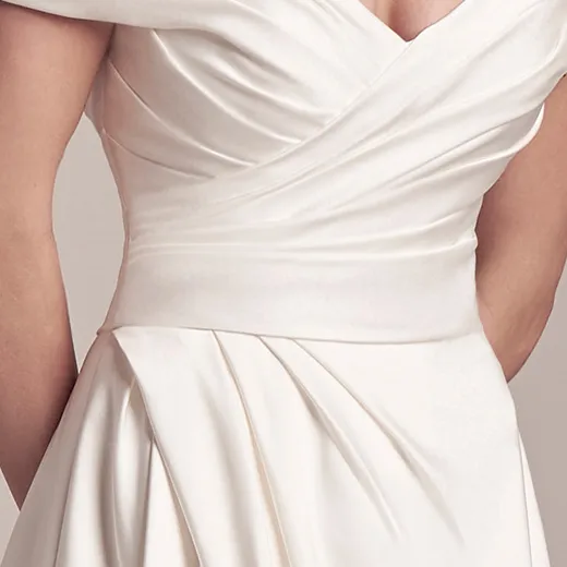 The Maggie Sottero Satin Fit-and-Flare Wedding Dress is a timeless choice for San Diego brides seeking elegance, romance, and a modern bridal silhouette. This gown combines fit-and-flare styling with luxurious satin fabric to create a flattering, curve-enhancing silhouette. The off-shoulder portrait neckline is a statement design, giving the bride a graceful, feminine look. The strapless design provides support while showing off the bride’s natural beauty, with delicate details that create a romantic, timeless appeal. The luxurious satin fabric ensures the gown flows beautifully and moves with ease, making it perfect for both grand ballrooms and beachside ceremonies in San Diego. The balance of modern features and classic design elements makes this gown the perfect fit for brides who want both style and comfort.