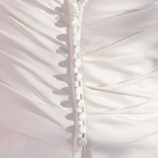 At Bridal and Tuxedo Galleria, we are excited to offer Maggie Sottero wedding gowns, including this stunning satin fit-and-flare dress. Known for their superior craftsmanship, Maggie Sottero gowns combine traditional elements with contemporary designs. The fit-and-flare silhouette is universally flattering and enhances the natural curves of every bride, making it a top choice for San Diego brides. The portrait neckline and off-shoulder design create an air of sophistication, while the strapless cut brings an elegant, feminine feel. Whether you’re planning a formal San Diego wedding or an intimate gathering, this gown is the ideal choice for brides who desire a refined and romantic look on their wedding day.