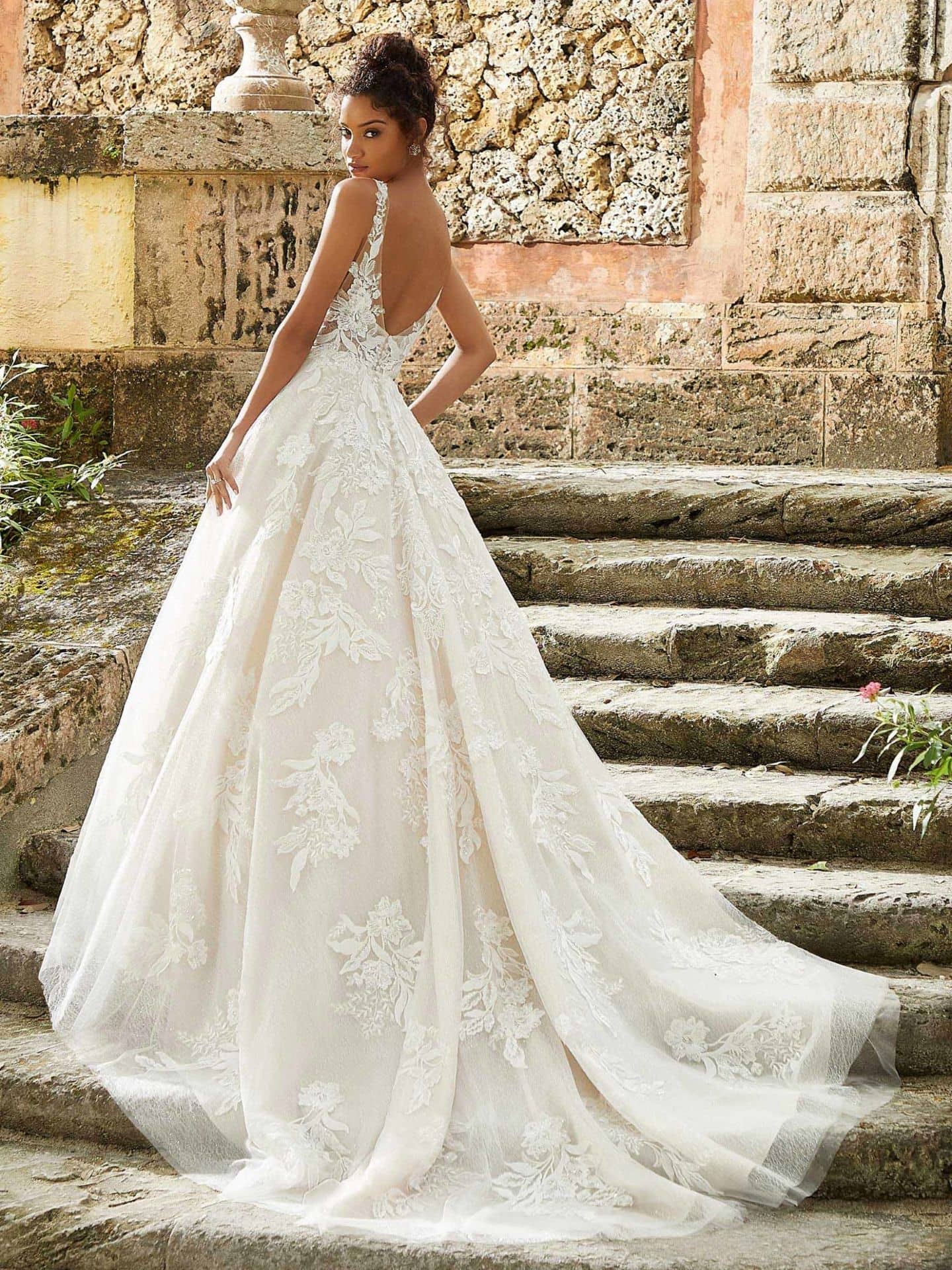 With full skirts crafted from net and lace, stunning V-neck bodices, and low-back or V-back designs, our Morilee gowns deliver elegance from every angle. Whether you’re planning a classic cathedral ceremony or a luxury garden wedding in La Jolla, these gowns are made to captivate.