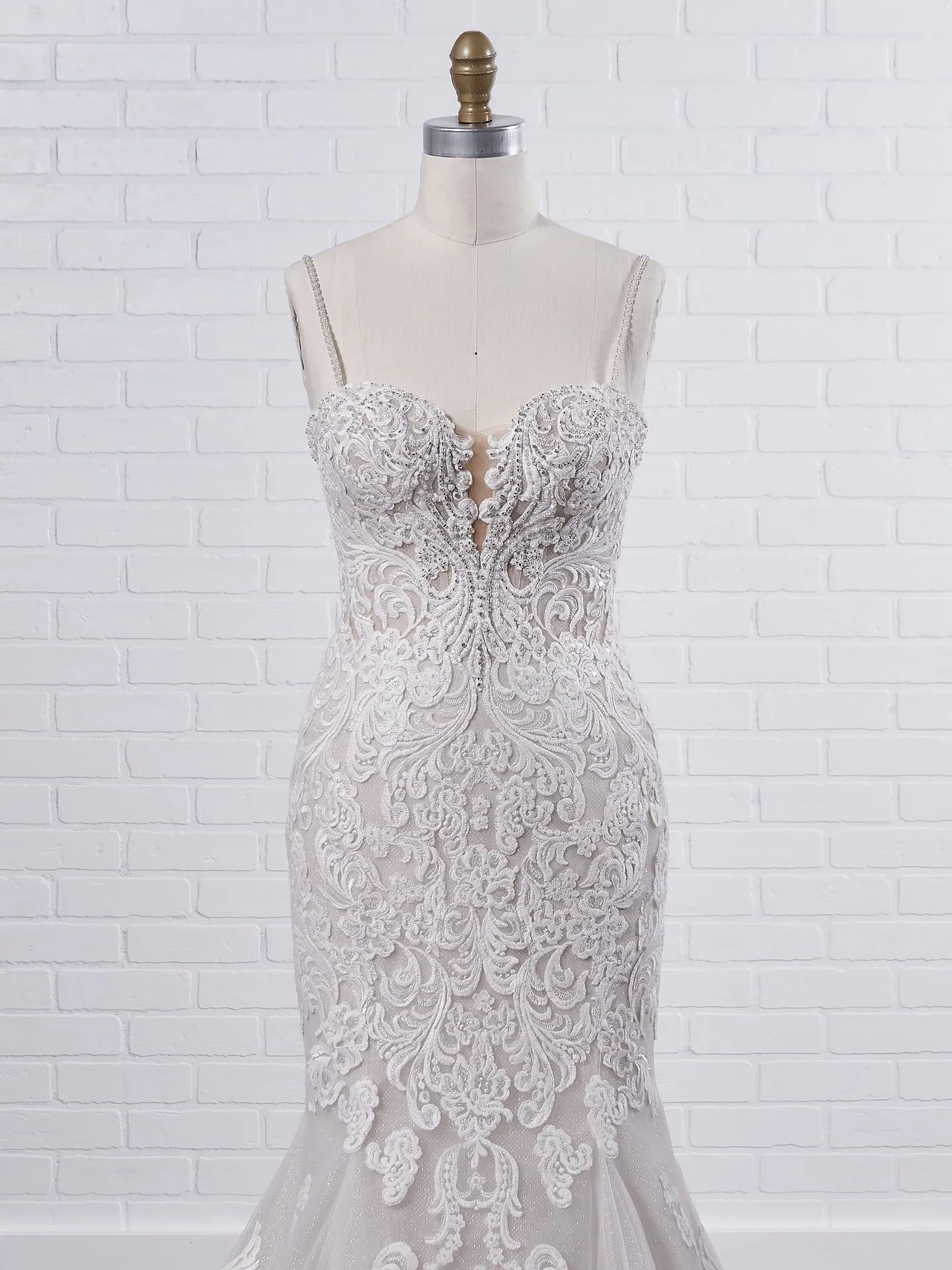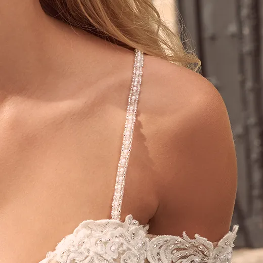 The fit-and-flare wedding dress is one of the most flattering designs for all body types. The gown hugs the body through the bodice and hips, then gently flares out to create a dramatic yet comfortable look. The Maggie Sottero fit-and-flare lace gown offers the perfect balance of elegance and freedom of movement, making it ideal for both formal and more relaxed weddings. San Diego brides love this silhouette for its timeless appeal and its ability to complement any type of wedding venue, from beach weddings to ballroom celebrations.