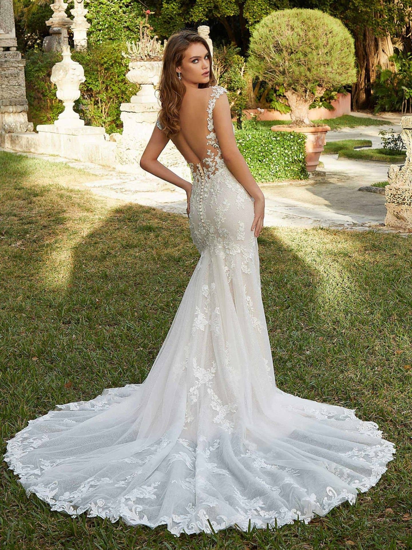 Intricate lace patterns add timeless charm and texture, while low-back designs deliver a dramatic and elegant exit. These gowns are made to impress from every angle, ensuring your walk down the aisle is both romantic and bold.
