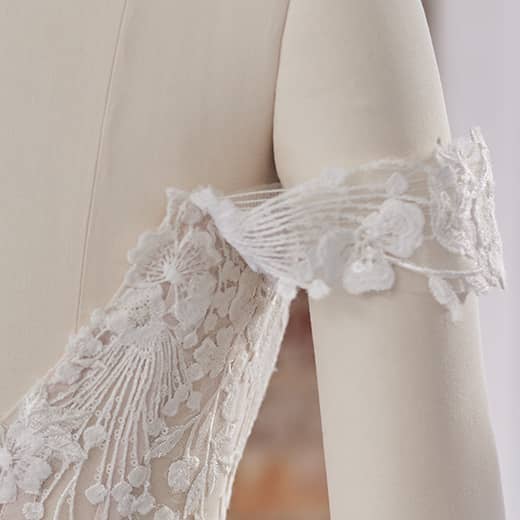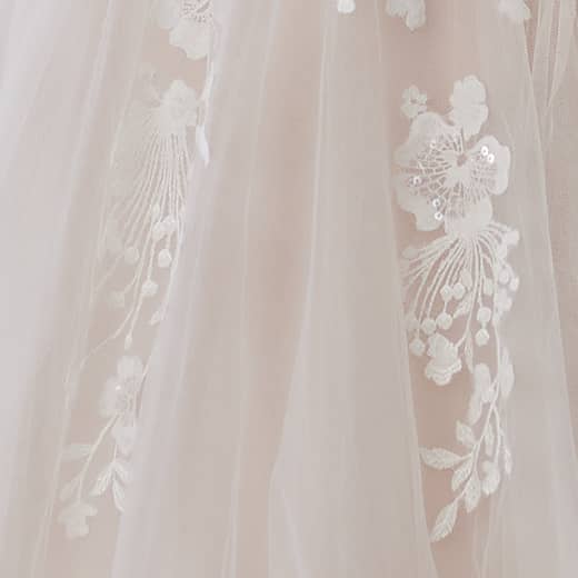 The ball gown wedding dress has long been a favorite for brides who want to make a dramatic entrance. The Maggie Sottero lace ball gown offers the perfect balance of glamour and elegance with its voluminous skirt and fitted bodice. The ball gown silhouette is flattering on all body types, creating an hourglass shape and giving brides the confidence to shine on their wedding day. This gown is ideal for San Diego brides looking for a gown that is both romantic and majestic, perfect for a formal wedding celebration.