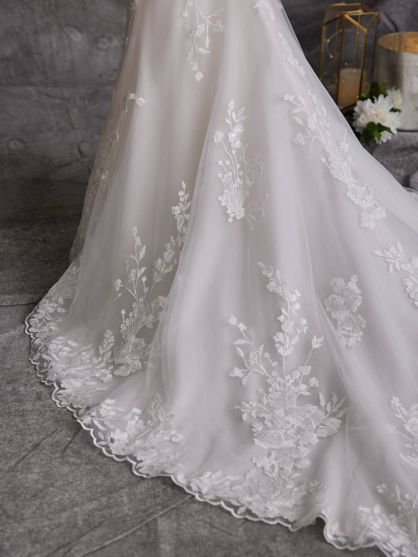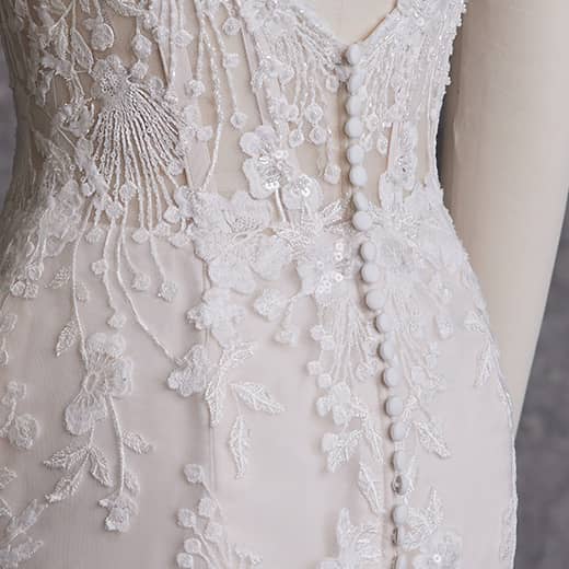 The sheath wedding dress is one of the most flattering and versatile silhouettes for San Diego brides. The gown hugs the body from top to bottom, offering a streamlined and elegant look. The Maggie Sottero lace gown with the sheath silhouette creates a sleek, sophisticated appearance that is perfect for brides who want to feel both comfortable and confident on their wedding day. Whether you’re having a formal San Diego wedding or a more relaxed ceremony by the beach, the sheath silhouette ensures you look stunning from every angle.