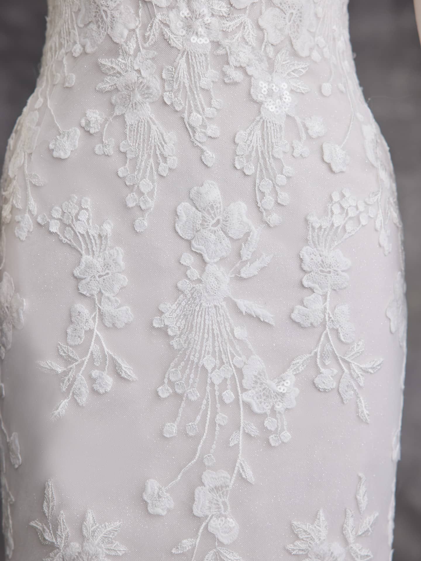 At Bridal and Tuxedo Galleria, we specialize in offering San Diego brides the best selection of Maggie Sottero wedding dresses, including this stunning lace sheath gown. Our expert consultants will help you find the perfect gown for your style, body type, and wedding vision. We offer personalized fittings and consultations to ensure that you feel confident and beautiful on your special day. Visit us today to try on this exquisite gown and explore other Maggie Sottero designs available in our sample sale at exceptional prices.