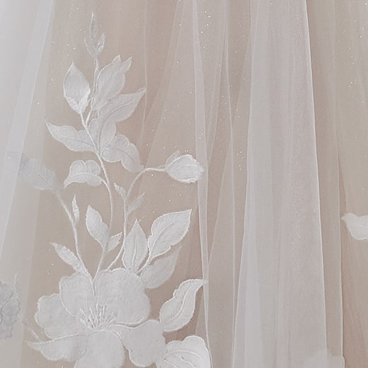 The combination of lace appliqué and soft tulle skirt gives the gown a graceful, ethereal feel. Whether you’re walking down the aisle in a cathedral or exchanging vows on the sand, this gown will photograph beautifully and feel light and luxurious throughout your special day.