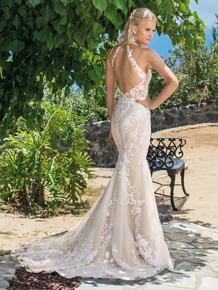 Brides in San Diego choose the Casablanca Chiffon Fit-and-Flare Wedding Dress because it offers a unique combination of classy elegance and romantic allure. The halter neckline adds a sophisticated touch, while the lace detailing and keyhole back provide just the right amount of sensuality. The fit-and-flare silhouette flatters every body type, creating a timeless look that is ideal for a wide variety of wedding themes.