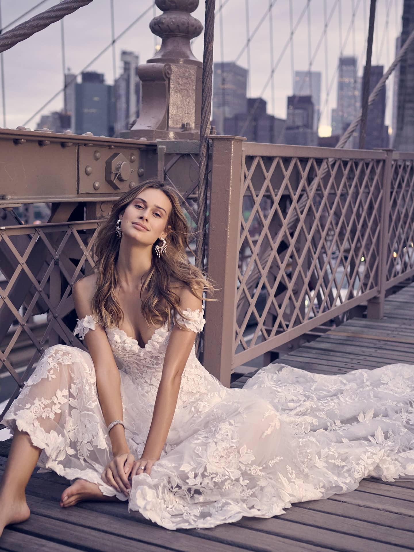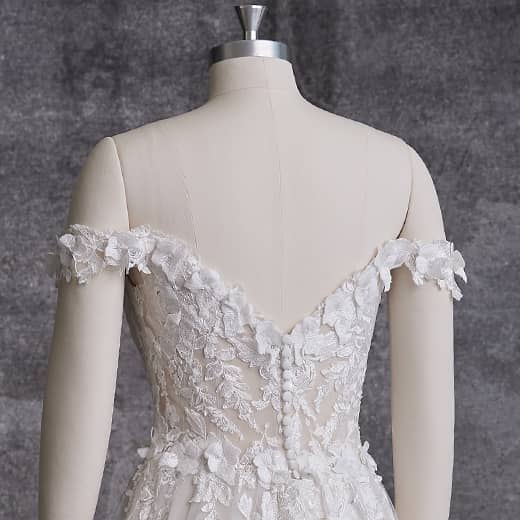 The Maggie Sottero A-Line Lace Wedding Dress is the perfect choice for San Diego brides seeking a combination of timeless elegance and modern style. This gown features delicate lace detailing that adds a romantic touch to the A-line silhouette, creating a universally flattering design. The off-shoulder portrait neckline adds a sophisticated and feminine look, accentuating the bride’s shoulders and neckline. The cap sleeves provide a delicate and elegant touch while ensuring support and comfort throughout the day. The soft and lightweight fabric of this gown makes it ideal for both formal San Diego weddings and more relaxed outdoor ceremonies. Whether you’re walking down the aisle at a grand venue or celebrating in a beachfront setting, this gown will make you feel graceful, confident, and radiant.