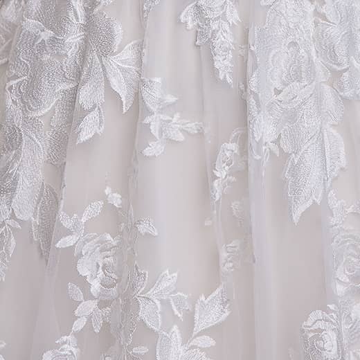 The A-line wedding dress is one of the most popular and universally flattering silhouettes, making it a favorite choice for San Diego brides. The A-line silhouette gently skims the waist and flows out into a flattering, graceful skirt. This design provides structure and elegance while allowing the bride to move freely and comfortably. The Maggie Sottero lace gown with the A-line silhouette is perfect for brides who want a classic, timeless look with a modern twist. Whether you’re hosting a grand ballroom wedding or an intimate outdoor ceremony, the A-line silhouette ensures you feel both beautiful and at ease on your wedding day.