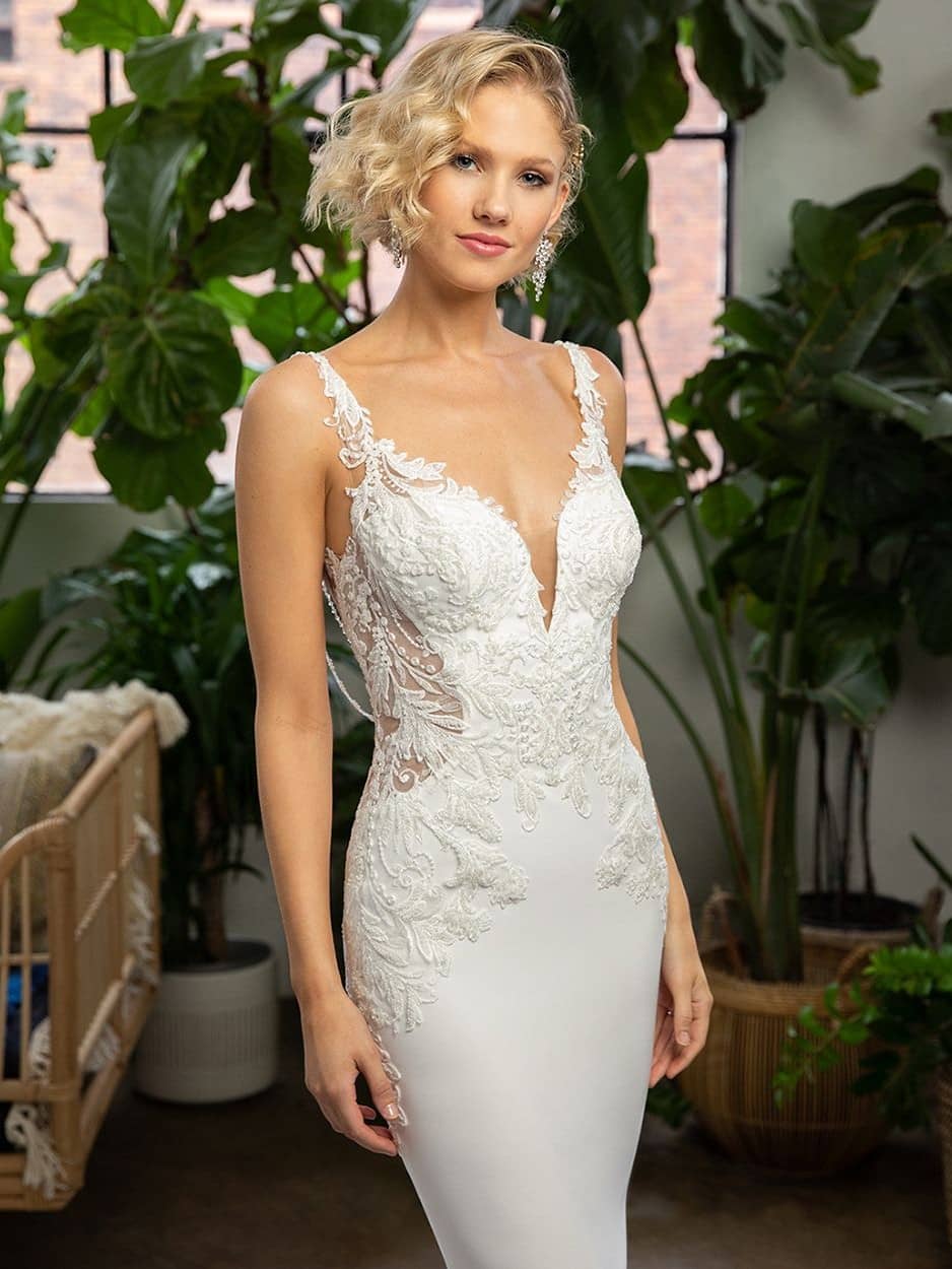 The Lexi Wedding Dress by Beloved by Casablanca Bridal is a show-stopping, statement-making gown designed to make you feel unique and beautiful on your big day. Featuring a V-front and fit-and-flare silhouette, the gown is partially lined and exposed on the sides and back for a sensual, shape-sculpting touch. Beneath the dramatic detailing, stretch chiffon ensures comfort and ease throughout your celebration.