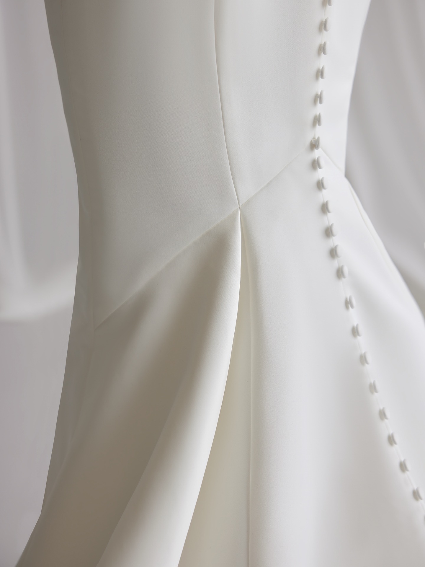 San Diego’s variety of wedding venues — from chic downtown ballrooms to oceanfront estates — inspires brides to choose gowns that are elegant, versatile, and easy to wear. The Rebecca Ingram Fit-and-Flare mermaid gown is a favorite among brides looking for a satin wedding dress in San Diego that flatters their shape and creates a lasting impression.