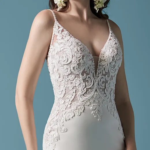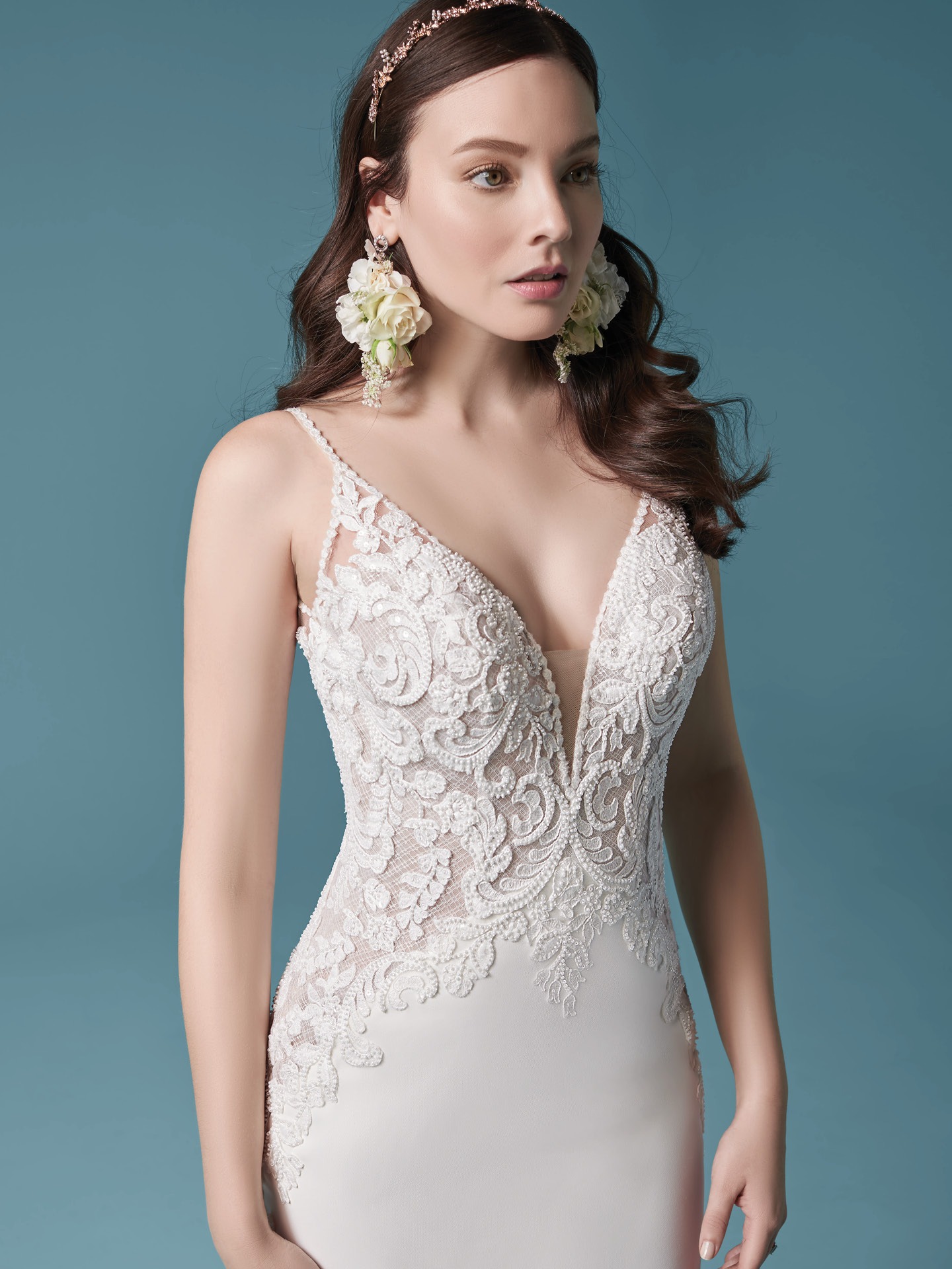 Tyra – Sheath Wedding Dress with Beaded Lace Bodice and Sleek Crepe Skirt by Maggie Sottero
