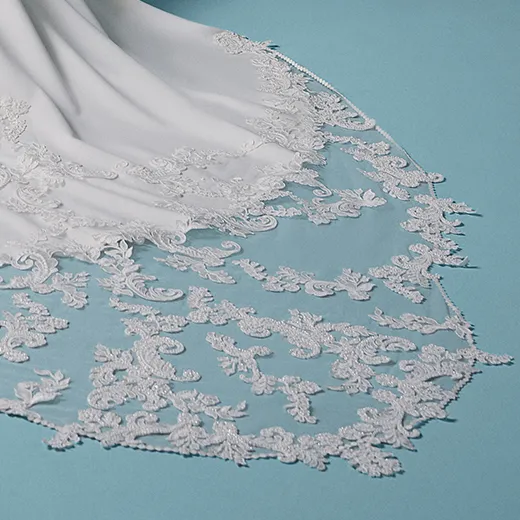 • Train: Chapel-length lace train with scalloped hem for showstopping movement
