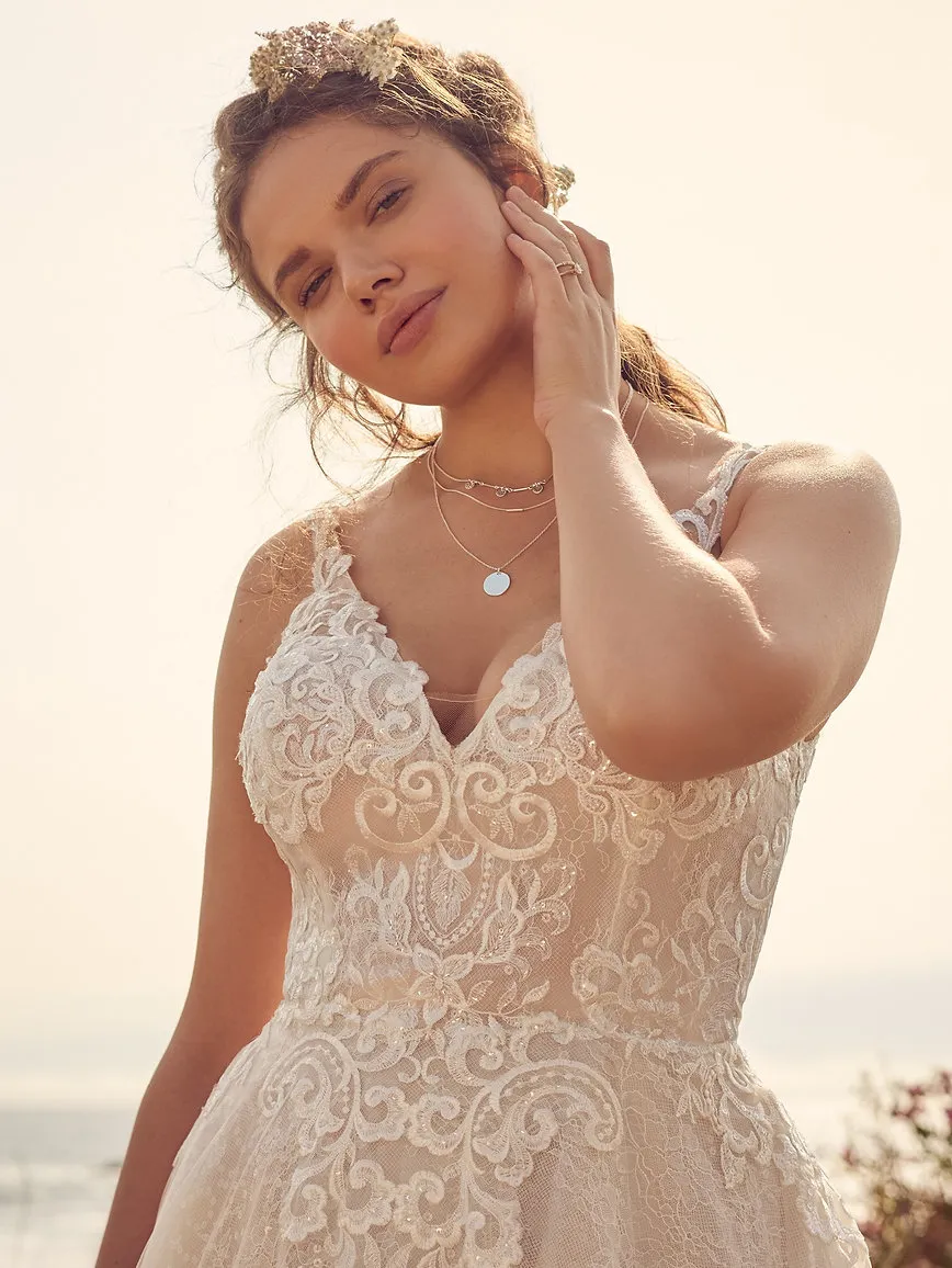 The A-line wedding dress is known for its flattering fit and elegant shape. It is a versatile silhouette that suits nearly every body type, offering comfort and grace without sacrificing style. The Rebecca Ingram A-Line Ball Gown in lace and tulle is a classic choice that provides a soft and romantic look, making it the ideal gown for San Diego brides who want something timeless yet contemporary. Whether you’re walking down the aisle in a formal venue or an outdoor garden wedding, this gown will make you feel stunning.