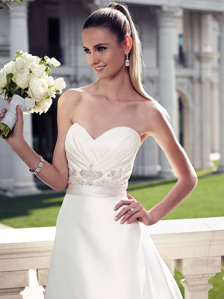 Discover Casablanca A-Line Wedding Dresses in San Diego – Romantic Satin Gowns with Strapless Sweetheart Neckline & V-Back