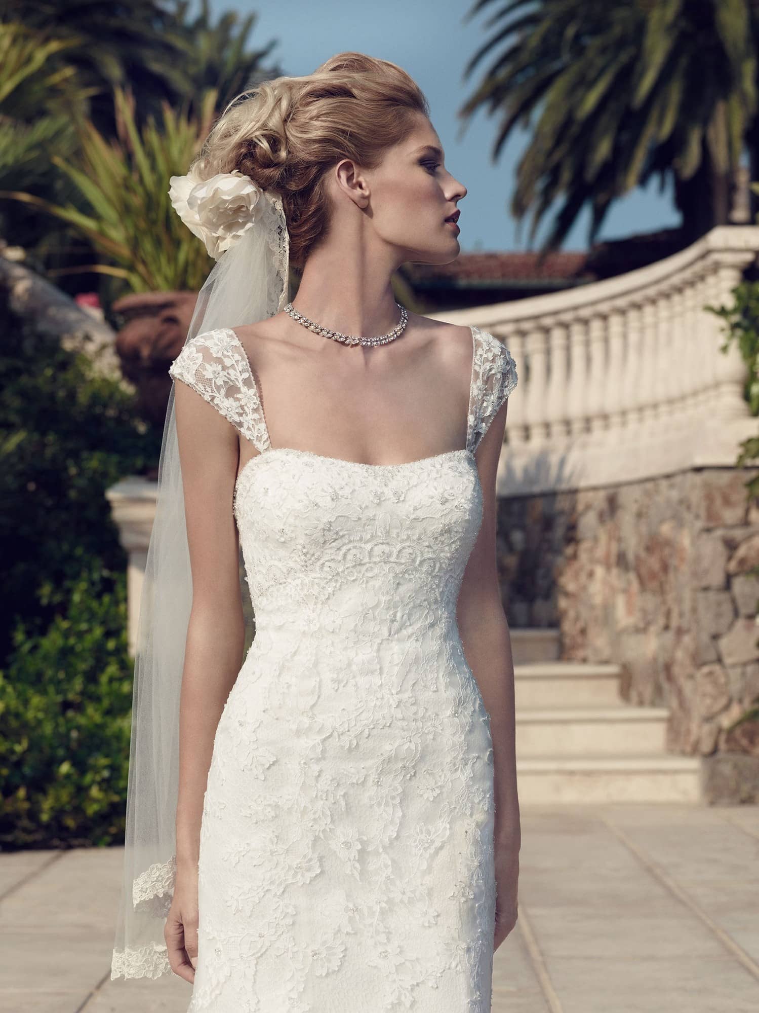 Discover Casablanca A-Line Wedding Dresses in San Diego – Romantic Lace & Satin Gowns with Sweetheart Neckline, Cap Sleeves & V-Back