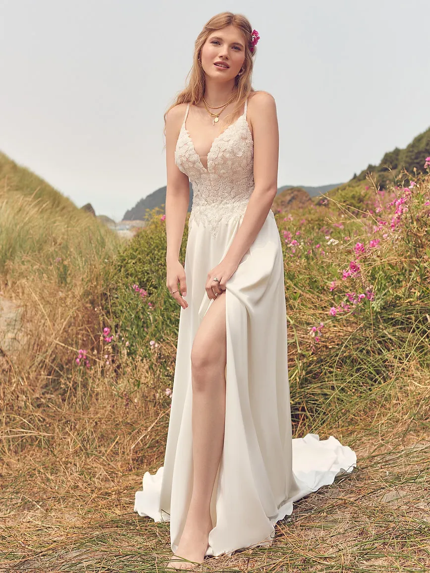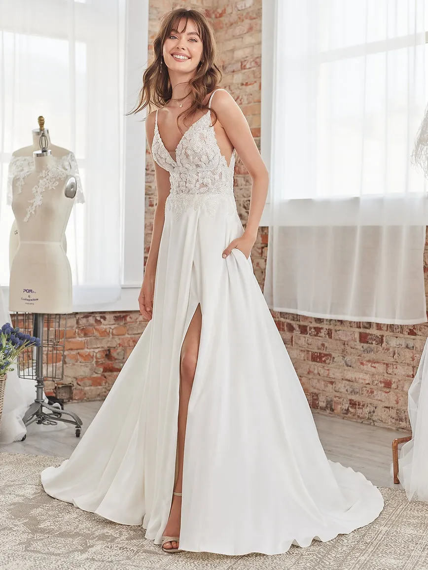 The A-line wedding dress is one of the most sought-after silhouettes because of its flattering and versatile design. It provides a slim-fitting bodice that flows gracefully from the waist, creating a beautiful, elegant shape. Whether you’re having an intimate beach wedding or a formal church ceremony, the A-line style will make you look and feel stunning. The Rebecca Ingram A-Line Lace Wedding Dress enhances this classic silhouette with luxurious crepe fabric, which adds a sleek, modern twist.