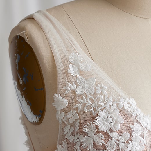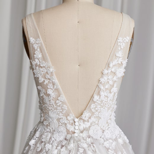 For brides looking for a vintage wedding dress in San Diego, the Rebecca Ingram A-Line gown brings together timeless romance and modern comfort. Crafted with delicate lace details, flowing tulle layers, supportive straps, and a flattering V-neckline with a V-back, this gown is designed to make your wedding day unforgettable.