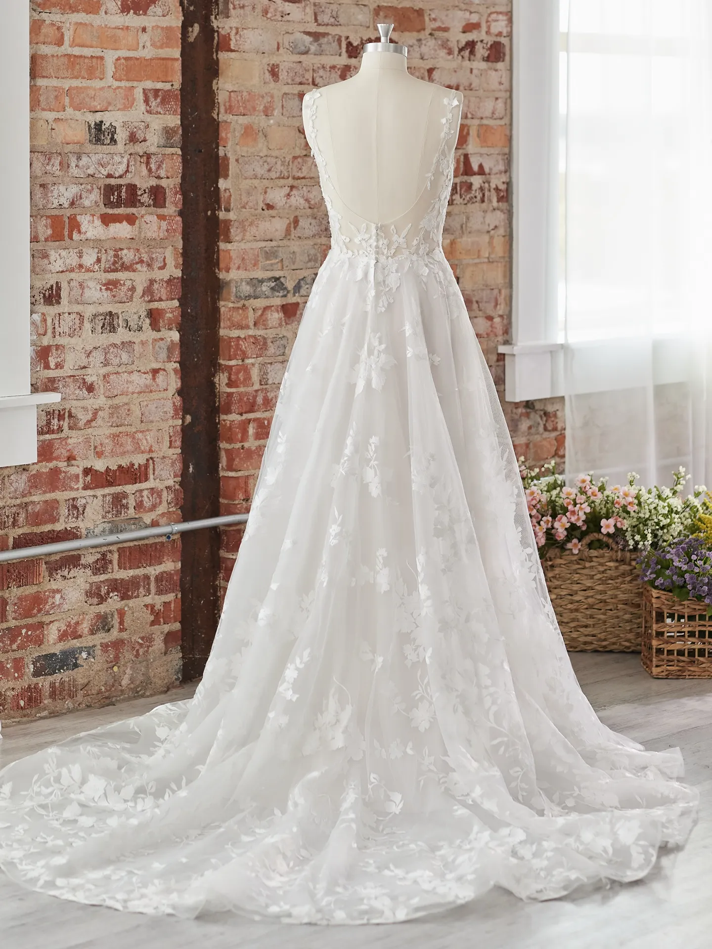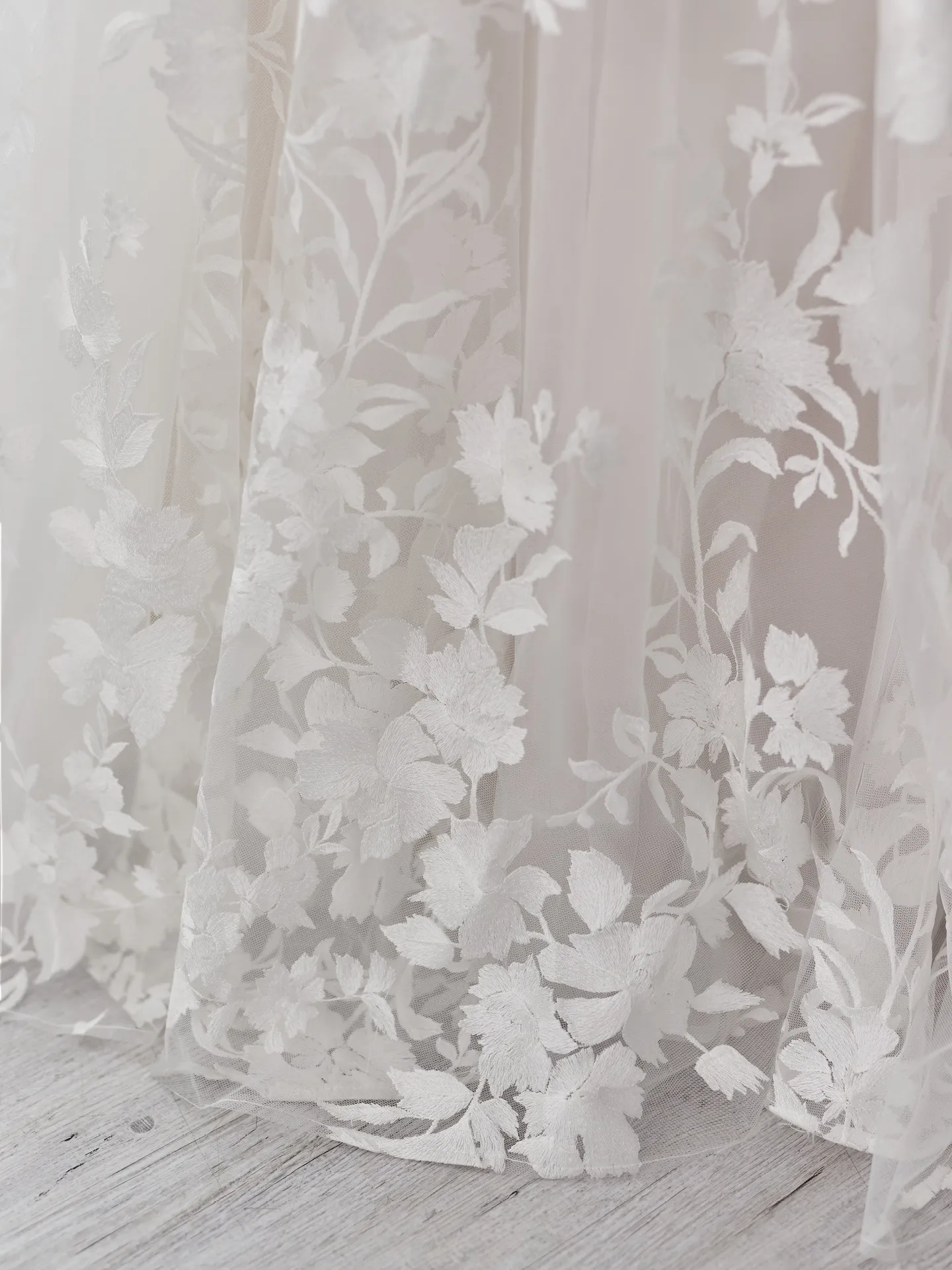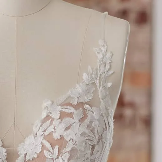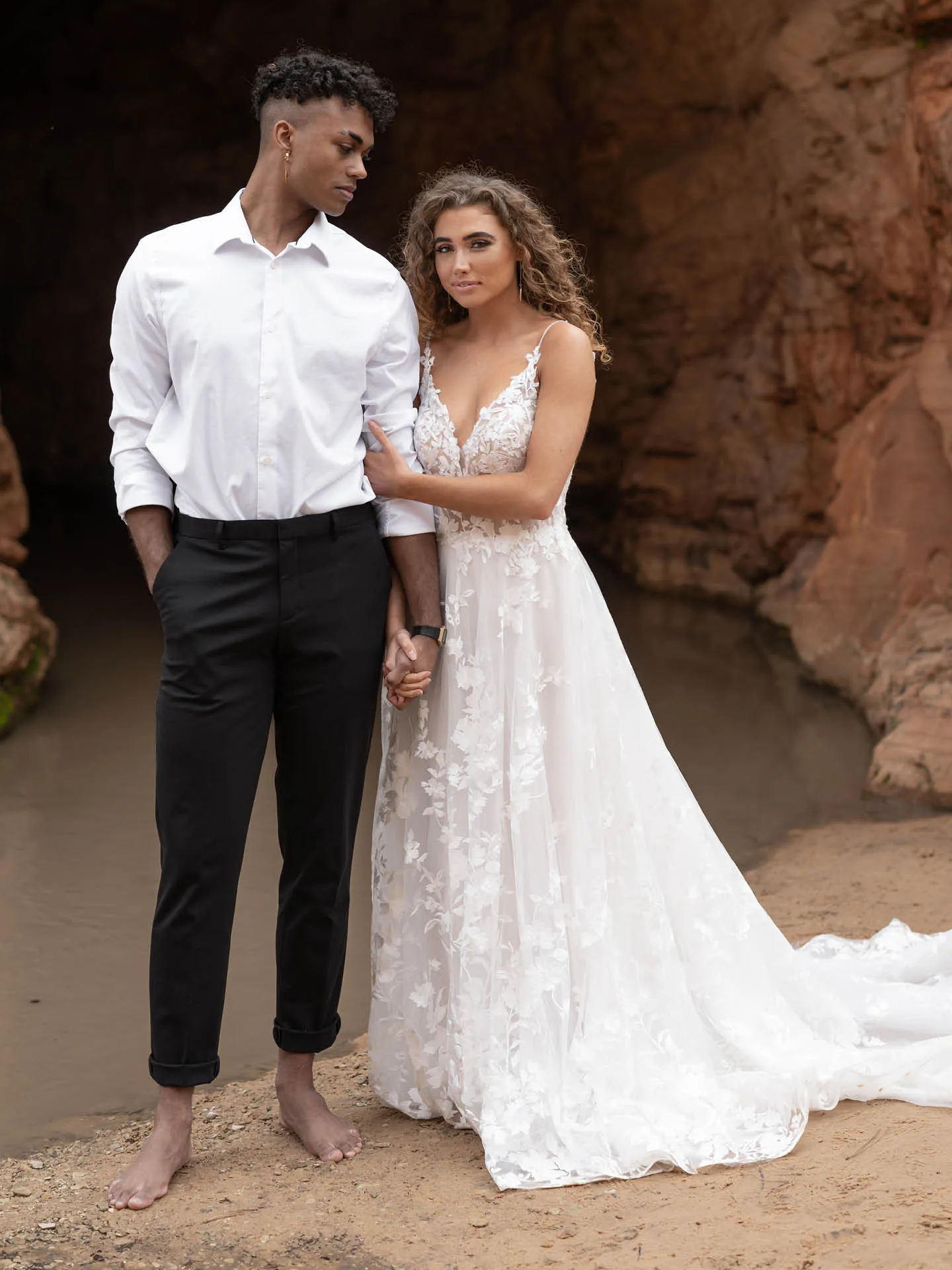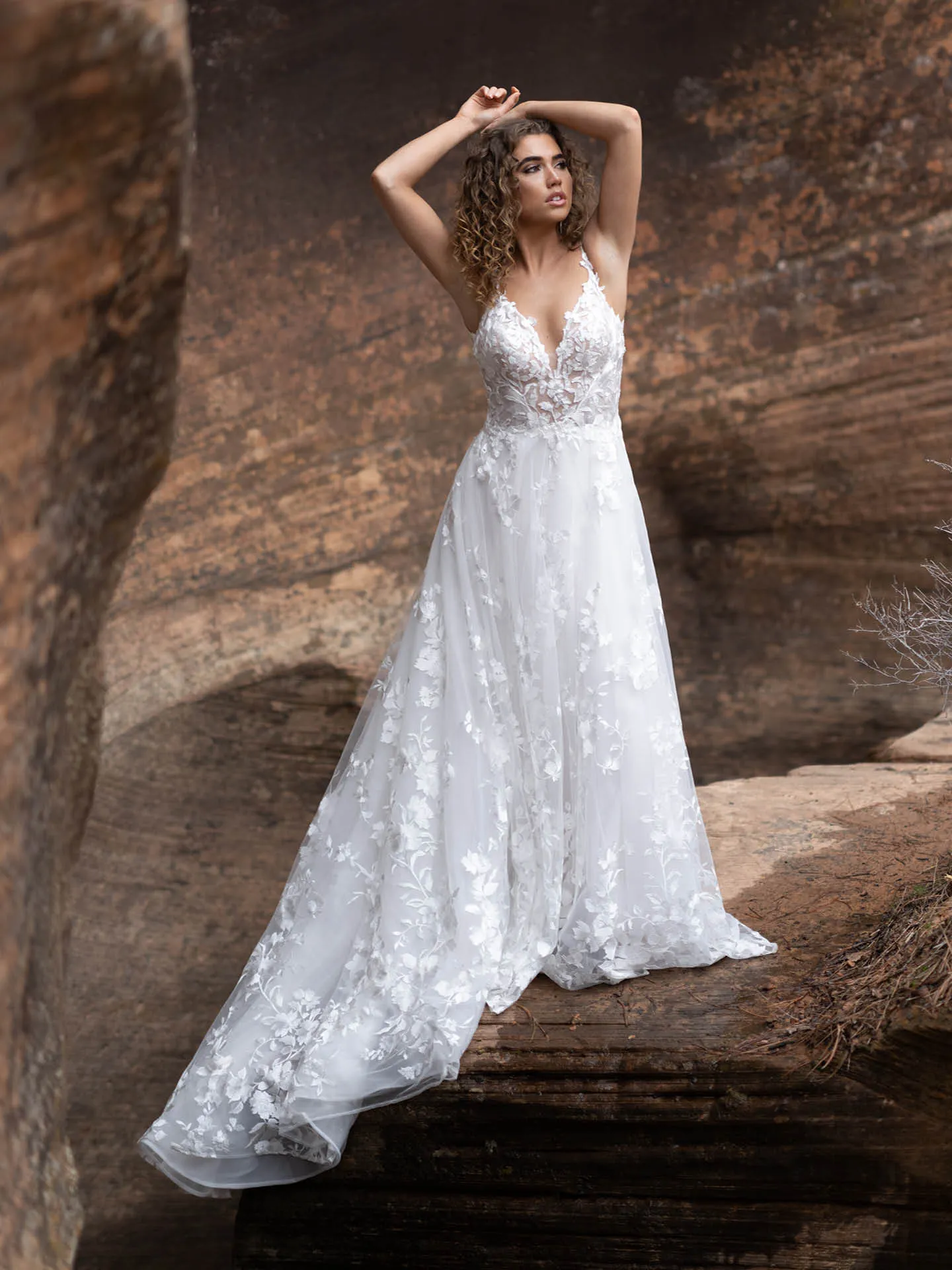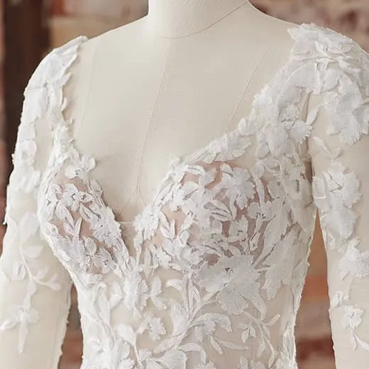 The A-line wedding dress is a universally flattering design, ideal for San Diego brides of all shapes and sizes. The A-line silhouette gently flows from the waist to the hem, creating an elegant and balanced shape that is perfect for both formal and casual weddings. The Maggie Sottero lace gown with its A-line cut provides comfort without compromising on style, making it perfect for brides who want a wedding dress that is both beautiful and wearable.