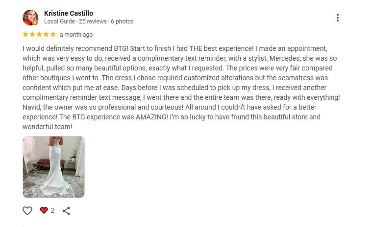 “When I tried on my backless wedding dress at Bridal & Tuxedo Galleria, I instantly knew it was mine. The lace detail along the back shimmered like poetry under the lights, and every photo captured the magic I felt that day. It wasn’t just a gown — it was a reflection of me.” – Samantha R., San Diego Bride